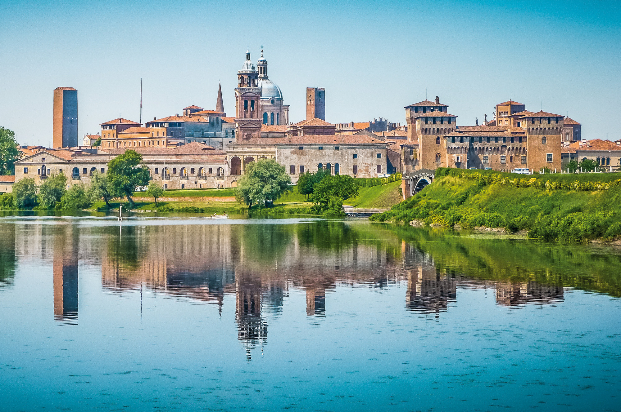 Umgeben von den Wasserarmen des Mincio schlendern wir durch die Altstadt, vorbei an großen Renaissance-Highlights wie der Basilika Sant’ Andrea, dem Herzogspalast und dem Palazzo Te. Ein Stopp beim Andreas-Hofer-Denkmal erinnert an die enge Verbindung zu Tirol, bevor wir den Besuch in Mantua bei einer Bootsfahrt auf dem Mincio entspannt ausklingen lassen.