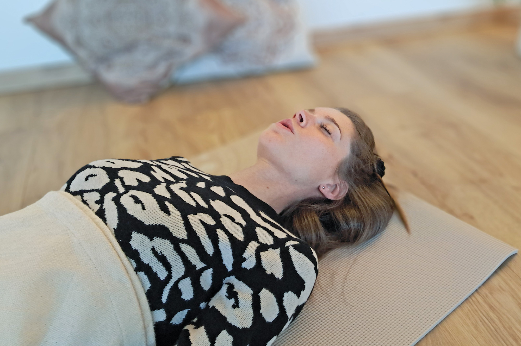 Bewusste Atmung, so Miriam, sei ein Werkzeug, das Selbstermächtigung und Selbstwirksamkeit bedeute. Diese Erfahrung würde viel verändern im Körper, man könne zum Beispiel Ängste und Zweifel verringern, die Selbstheilungskräfte aktivieren und sogar Entzündungswerte senken. Bewusste Atmung reguliert auch akute Schmerzen. „Indigene Kulturen nützen dieses Wissen seit Jahrtausenden.“ Tiefe Bauchatmung helfe auch, wenn das Schäfchenzählen in der Nacht nicht zum gewünschten Ergebnis führt. „Länger ausatmen als einatmen – das beruhigt das Nervensystem. Beim Ausatmen summen, verstärkt den Effekt noch zusätzlich.“