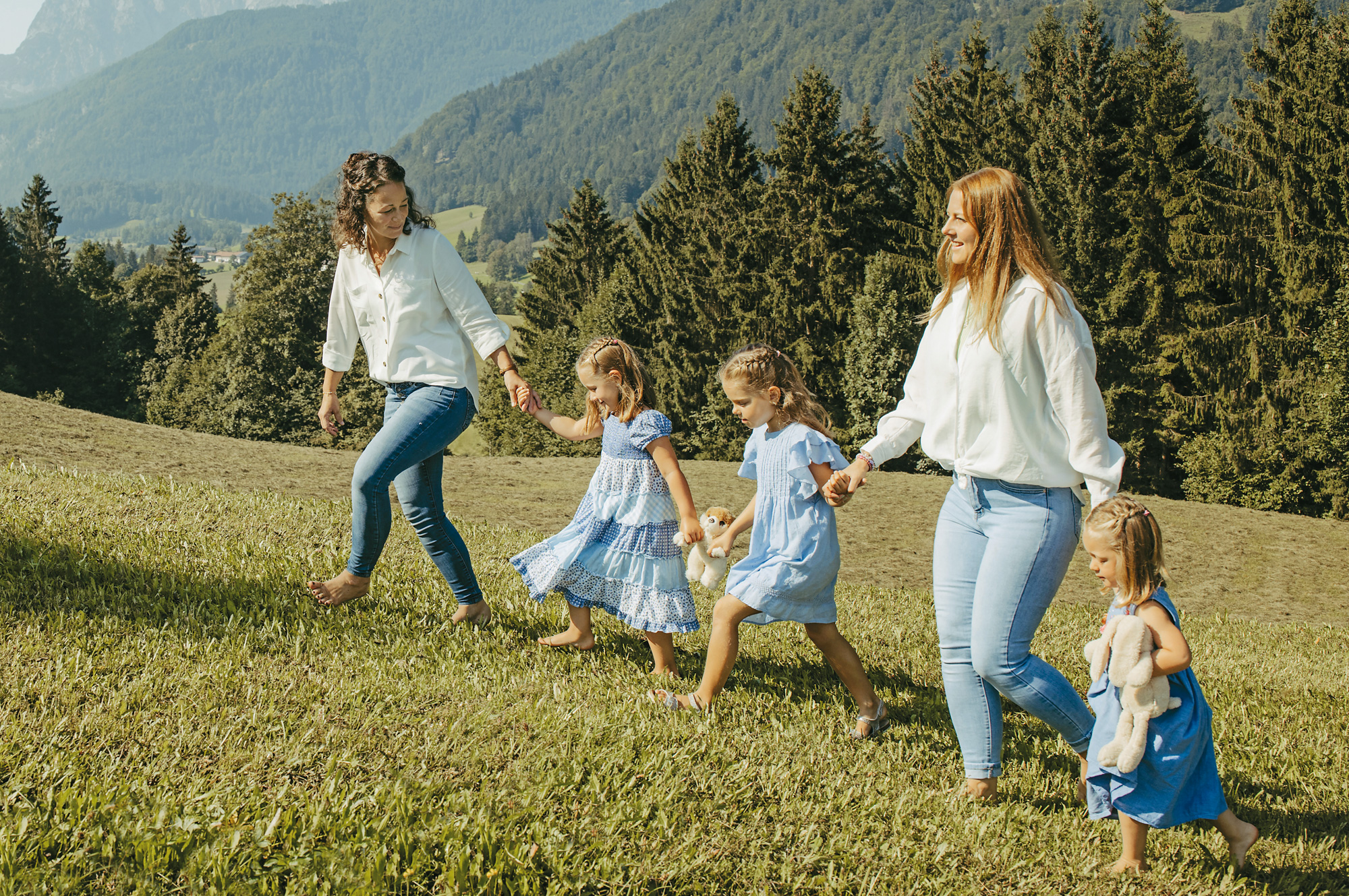 So machten wir uns vollbeladen mit Wagerl, Maxi Cosi und den Babys auf den Weg nach Salzburg und gingen auf Entdeckungsreise ins Katholische Bildungswerk. Vollbepackt mit vielen Informationen, gutem Zuspruch und den Kopf voller Ideen ging es wieder nach Hause, um dort etwas Neues aufzubauen. Beginnend mit einem offenen Treff, den wir im Pfarrsaal in Kössen starteten. Durch die gut besuchten Treffs (indoor und outdoor) wurden wir in unserer Idee bestärkt und es ging los mit dem „Eltern-Kind-Zentrum Kössen-Schwendt“. Offene Spieletreffs, Eltern-Kind-Turnen für verschiedene Altersgruppen, Entdeckerzwerge, Kreativwerkstätten, Waldzwerge, Lesewerkstätten, Bastelwerkstätten und viele weitere Gruppen entstanden und wurden, so gut es neben den eigenen Kindern ging, umgesetzt und waren zu unserer Freude sehr gut besucht! Vom Pfarrsaal, der Turnhalle über den Spielplatz und dem umliegenden Wald, suchten wir passende Plätze, um die Ideen umzusetzen. Wir hatten stets die Unterstützung unserer Gemeinden, sowie auch von der Pfarre, denen wir sehr dankbar sind und wir jederzeit etwas Passendes finden konnten.