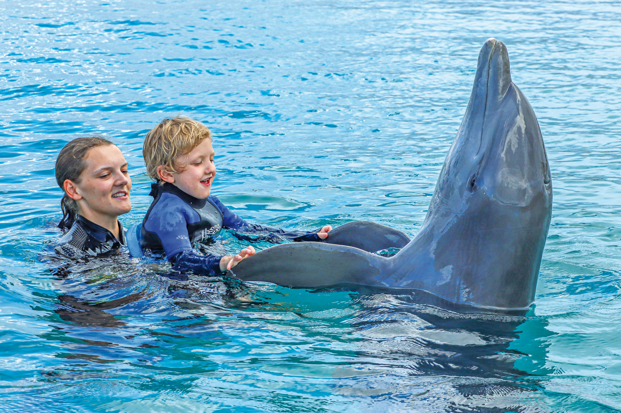 Die Mutter eines Kindes, das in einer ähnlichen Situation wie Loy war, erzählt Yvonne eines Tages von der Delphin-Therapie auf der Karibikinsel Curaçao. „Mir erschien sowas völlig absurd, vor allem wegen der Kosten“, erinnert sich Yvonne. Aber dann kommt der vormalige VST-Präsident Fidji Fiala bei den Neumanns daheim zu Besuch, und er ermuntert Yvonne, sich weltweit nach passenden Therapien für ihr Kind umzusehen. „Und da bin ich immer und immer wieder auf die Delphin-Therapie gestoßen.“